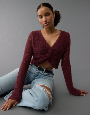 AE Pointelle Twist Front Cropped Sweater Very well made.